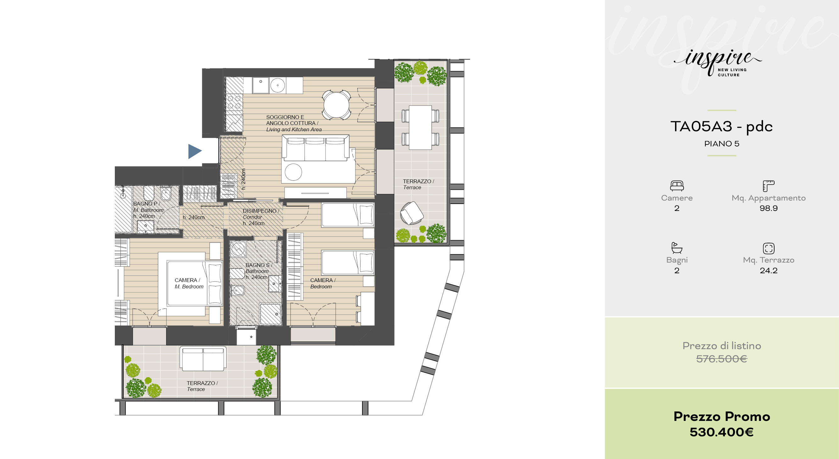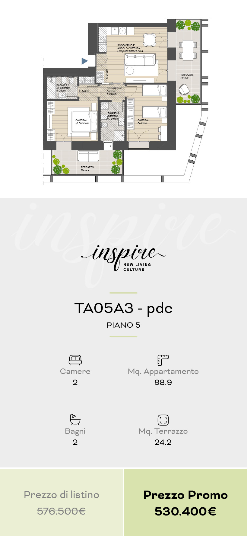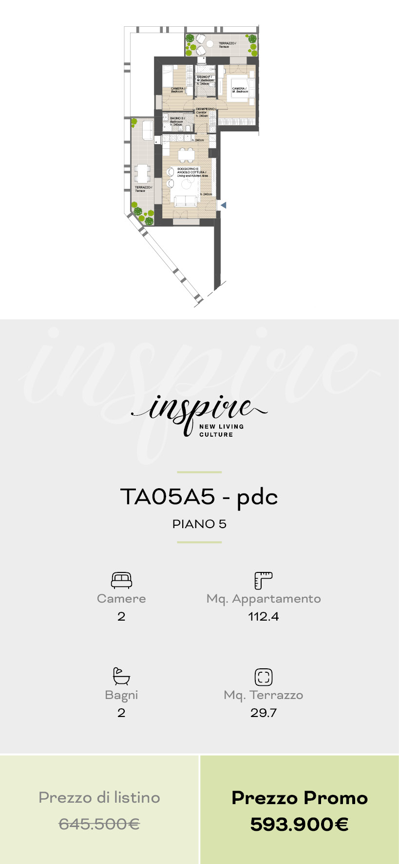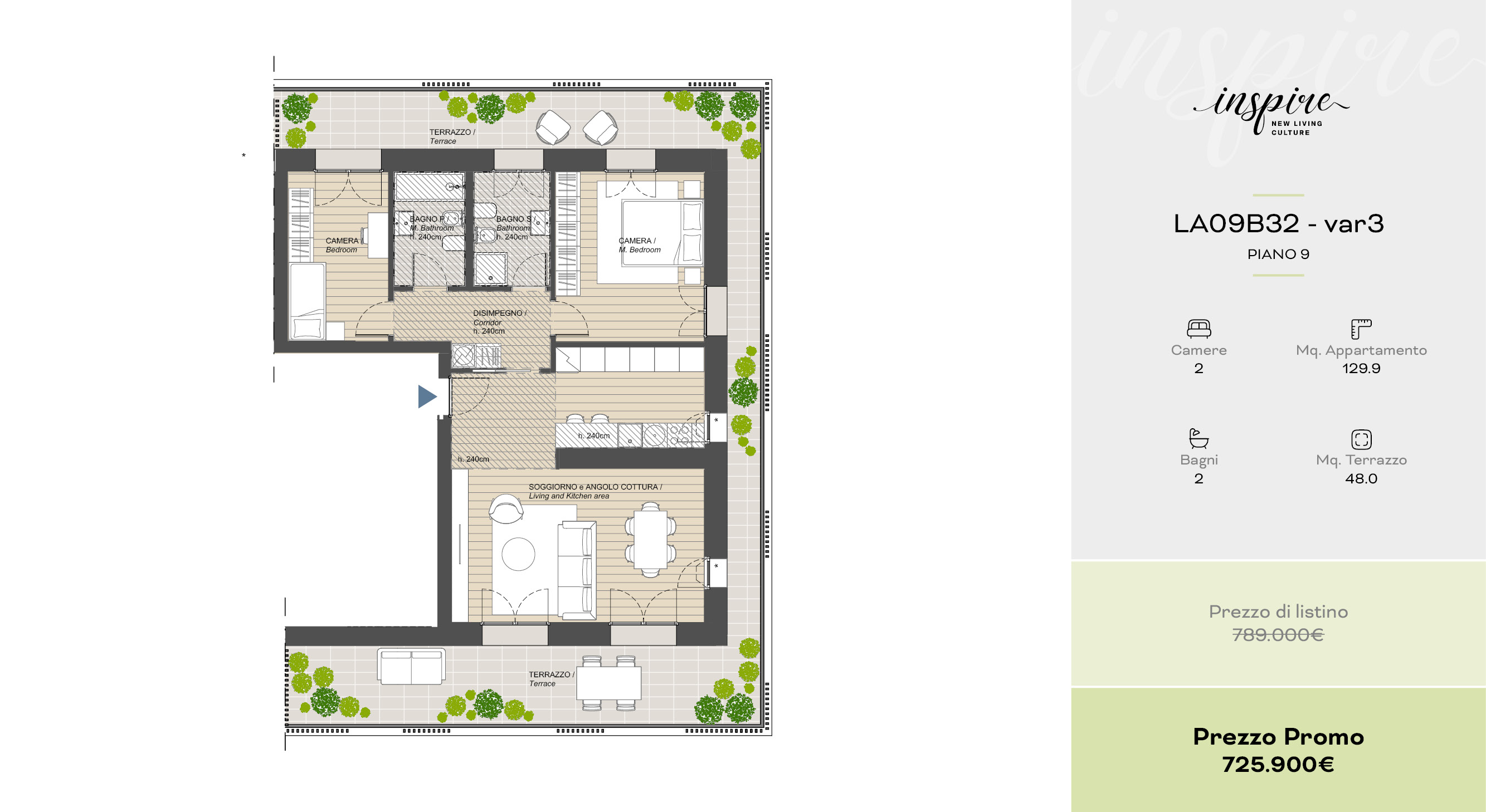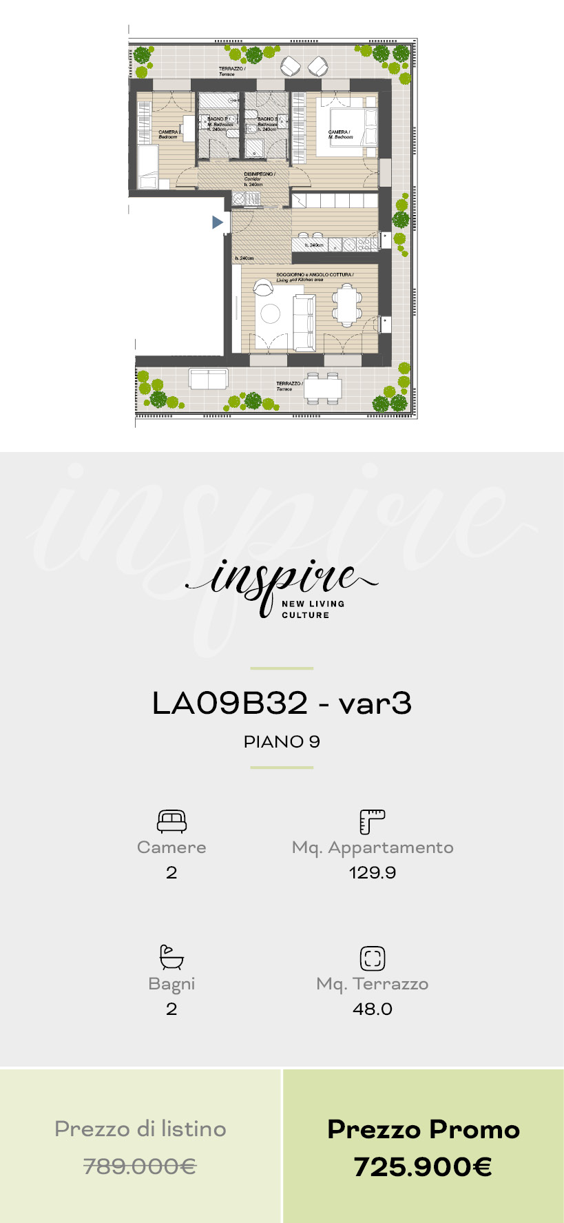 Una selezione di 10 appartamenti esclusivi, dal bilocale al quadrilocale, progettati per offrire comfort, flessibilità e spazi esterni vivibili. Disponibili anche in pronta consegna.